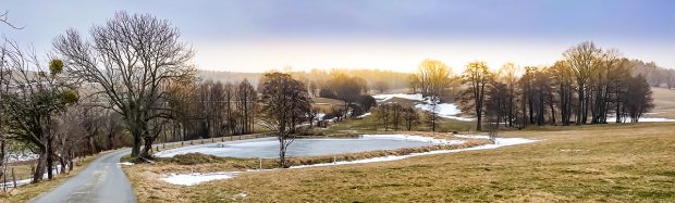 Bis dahin führt uns die Tour durch Wiesen und leichtes Hügelland. Links und rechts fällt der Blick auf zwei Erhebungen, die beide Hutberg heißen. Nach dem kleinen Teich rechterhand geht es erneut leicht bergan. Hier kann man noch eine kurze Rast einlegen. Nach einem Waldstück haben wir links einen schönen Blick zum Gelände des Forkersbergs.